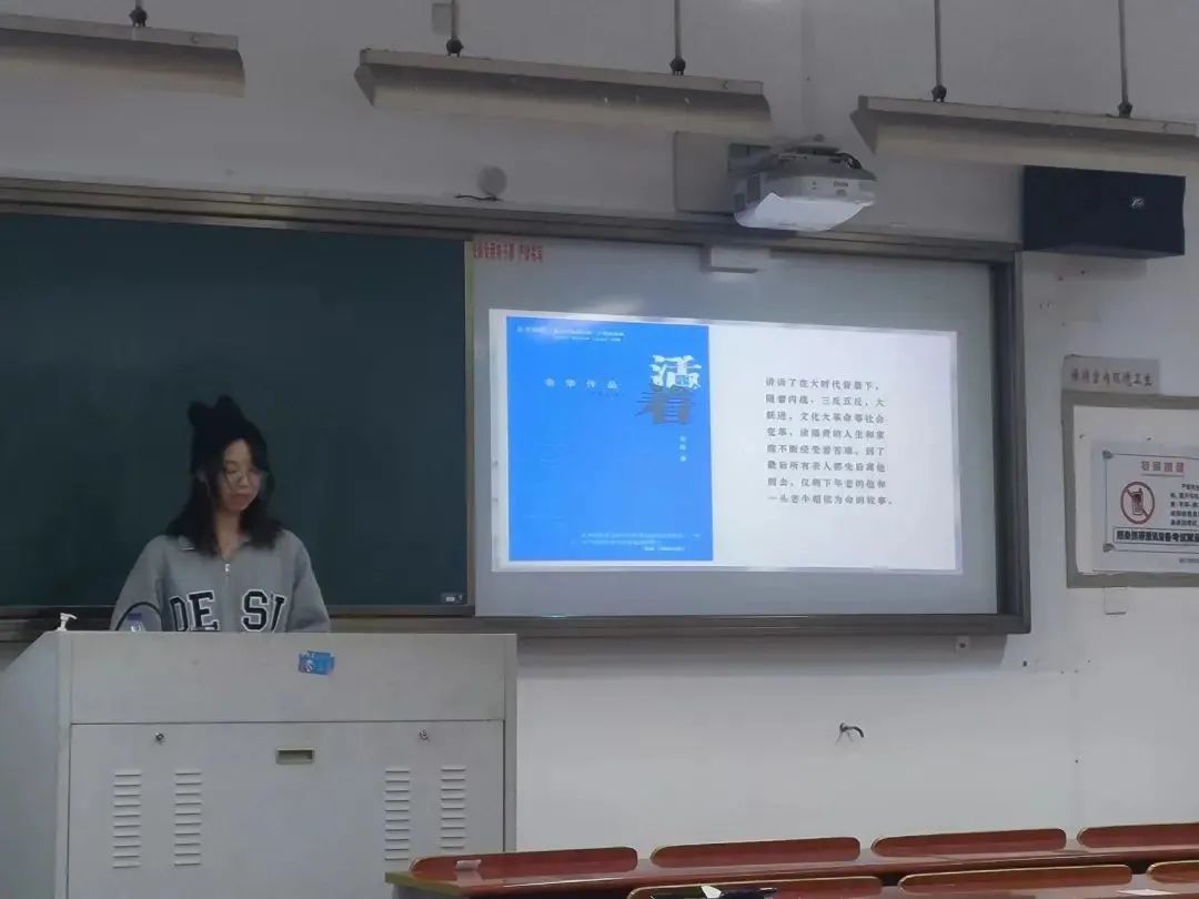 “生命不能承受之轻,能接受之痛,愿我们都能从中找到力量,懂得真正的勇气是失去一切后,依然热爱生活。”这是王韵之同学对生活的期望,愿我们都能从《活着》这本书中获得自己对生命的感悟,发掘人生的感触。愿每一本好书都能被发掘,愿每一个阅读者都能走进一个全新的世界。感谢两位同学的贡献,以及在场每位同学的支持,本次活动圆满结束。