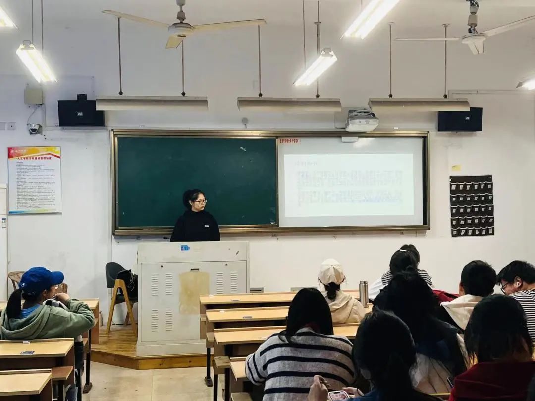 在清风日丽中,社长通过PPT讲解形式和我们一起回忆了与清明节相关的知识,将清明节的前世与今生牢固地扎根在我们的脑海中。