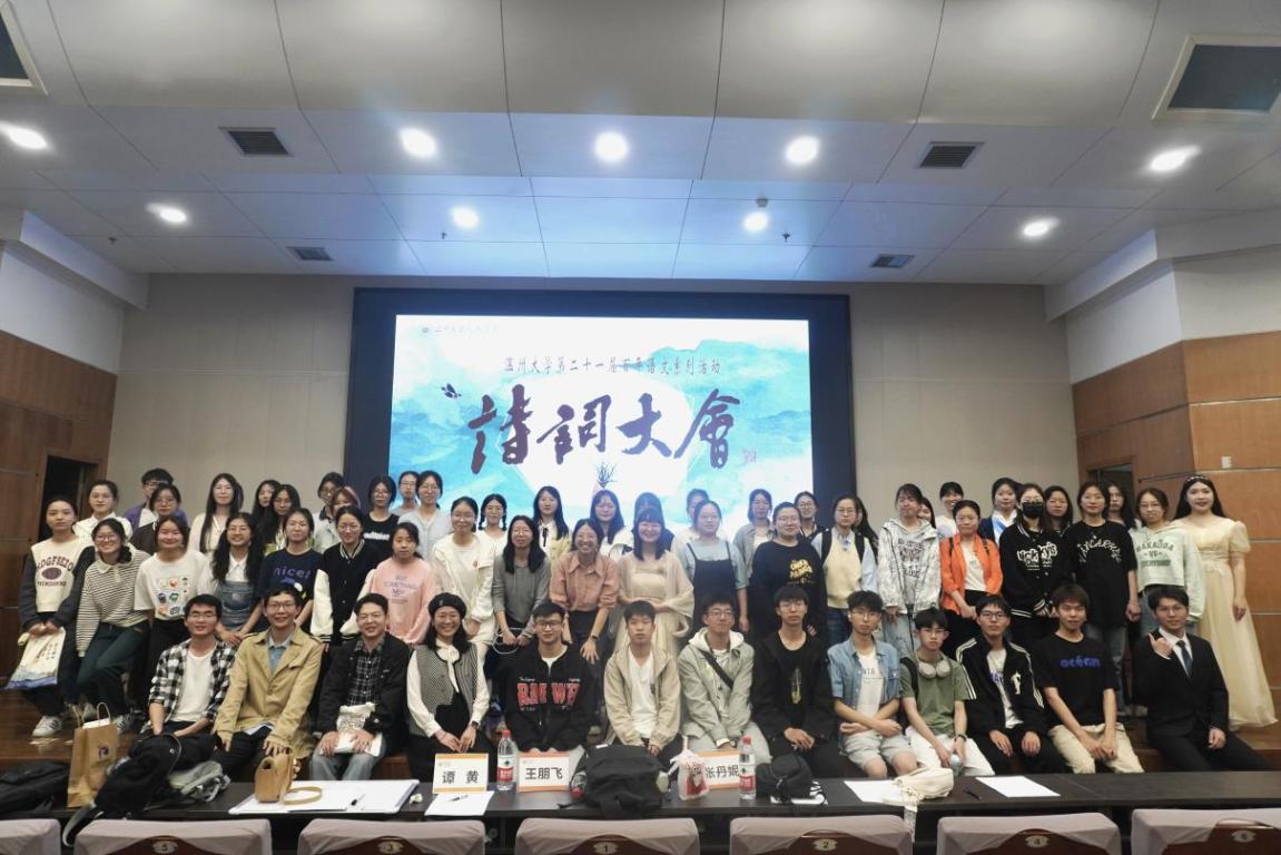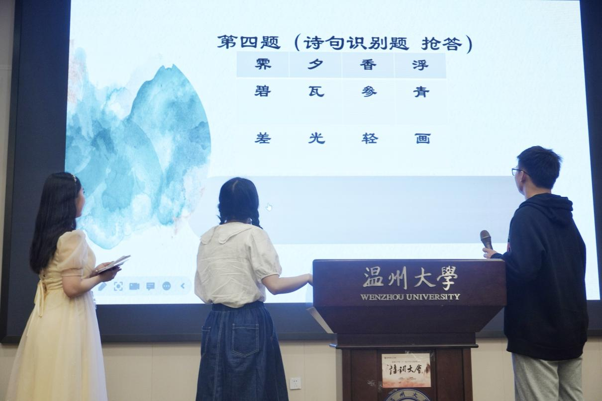 “群雄逐鹿”中,参赛选手根据初赛得分情况分别组成五人团、十人团。五人团选手只能选择一套题,十人团选手作答所有题,两团各晋级两人进入第二轮角逐。在答题过程中,选手们或展露“我是清都山水郎,天教分付与疏狂”的自信旷达之姿,或尽显“吾胸有成竹,明月皆入怀”的运筹帷幄之风,体现出深厚的文学素养。在点评环节中,王朋飞老师分别对诗词格律及词牌名作了专业阐释,令同学们受益匪浅。