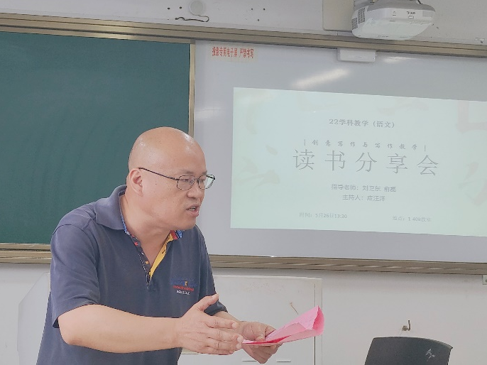 “欲求教书好,先做读书人”,阅读是教师成长的必由之路。为了进一步强化学生的阅读习惯,提升写作教学的专业素养,打造一支高素质的未来青年教师队伍。5月26日下午,22级学科教学(语文)专业在财神捕鱼 开展了以“以读促教,以读促写”为主题的读书分享会,探讨创意写作与写作教学。本次活动由应汪洋同学主持,特邀财神捕鱼 写作教学名师俞磊、财神捕鱼 创意写作研究中心刘卫东博士指导点评。