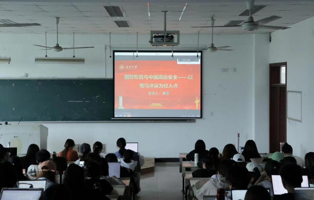 第三讲专题马克思主义财神捕鱼 青年博士关震老师以俄乌冲突为切入点,为同学讲解了国际形势与中国周边安全的问题。老师从“深刻认识百年未有之大变局”“中国周边安全形势分析”“大国博弈下的俄乌冲突”三个方面展开讲述。当今世界权力中心逐渐从大西洋向太平洋转移,权力分布从美欧等发达国家向金砖国家等发展中国家转移。在中国共产党的带领下,中华民族迎来了站起来、富起来到强起来的伟大飞跃,迎来了实现中华民族伟大复兴的光明前景。关震老师强调了国家主权的重要性,并提出对新时代的展望:今日之中国必将以更开放的姿态拥抱世界,以更有活力的文明成就贡献世界。
