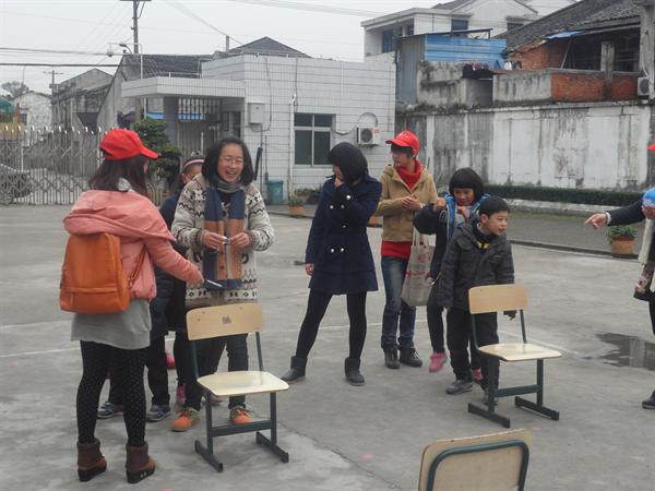 8时20分,大家到达了丽岙一小,小朋友们已经在校门口等待了,一看到我们的到来就纷纷迎了出来,拉着志愿者老师们进去。于是在简单的安排后,大家戴好志愿者帽子就去将桌子椅子搬到操场上来,小朋友们也帮助志愿者老师们做一些简单的搬运。此次兴趣班圣诞游园会活动主要分为了五个游戏点,有铁人三项、瞎子背瘸子、两人三足、抢凳子、亲密接触等。小朋友们在青协干事处领了记分卡之后就投入到了游戏之中,大家在各个游戏点穿梭,玩的不亦乐乎,冬天的寒冷似乎被小朋友们的热情给驱散了,在孩子们的身上有的只是快乐,寒冷退到了角落,财神捕鱼