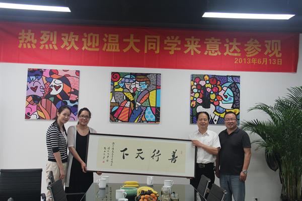 赠送一副写有“善行天下”的字画感谢意达公司多年来的默默付出。即将毕业的10位2009级的同学们做了纪念相册赠送给王校长表达感恩之情。四年来,同学们在意达公司的资助下,解决了生活上的燃眉之急,在王校长的谆谆教导下,努力学习,认真做事。毕业生们纷纷表达了对意达公司的感谢,承诺将用行动来回馈社会,做一名爱心传递接力手。