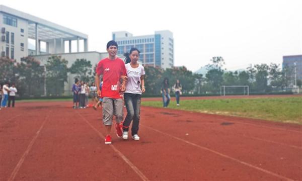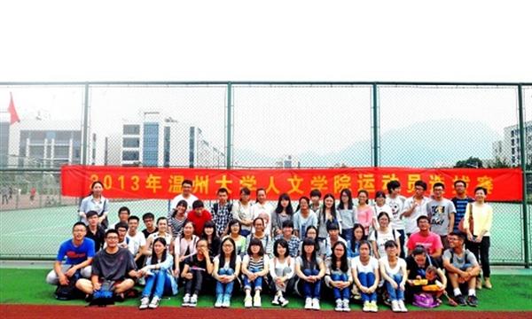 尽管九月的温州已然入秋,但微凉的天气丝毫阻挡不了同学们的热情。早晨8时许,同学们就已经陆陆续续地来到操场。选拔赛首先由“两人三足”趣味赛拉开帷幕。随着一声令下,同学们和各自的搭档相互搀扶着,配合默契、有条不紊地完成了比赛。紧接着,田赛径赛项目也纷纷展开。跑道上,疾驰的运动员宛若脚底生风,你追我赶,引来了旁观同学们的一阵阵喝彩声。红旗、跑道、跃动的身影,炽烈如火;田径赛场上,参加标枪、铁饼、跳高、跳远等项目的同学也是各显神通,一次次精彩的表现也引来了同学们如潮的掌声。绿色的草坪,金黄的沙坑,交织辉映,激扬出青春的背景。看着大一新生朝气蓬勃的冲劲,大二大三的同学也毫不示弱,各自拿出自己的“杀手锏”,将竞技气氛推向了高潮。