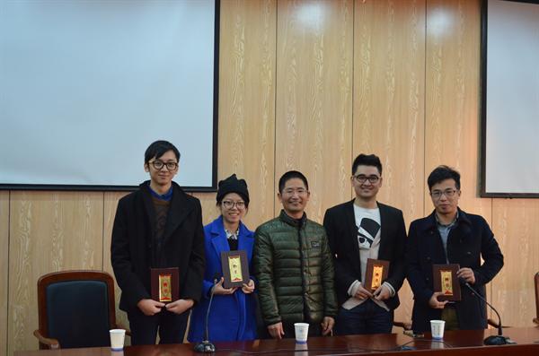 向四位优秀毕业生颁发了聘书,聘请他们成为校外辅导老师,告诉他们这是荣誉、激励,也是责任!希望他们能为学弟学妹们树立榜样,提供更多的学习经验。