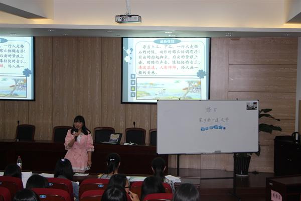 第二个环节则是模拟课堂环节,每位选手和各自的五名模拟学生进行模拟教学,要求课堂上有互动。第一个登场的选手为大家带来的课程是《虎门销烟》。选手清晰的授课思路,生动活泼的话语,让整个模拟课堂顿时有声有色。同时,与模拟学生的互动环节也充满了乐趣,问答、朗读,一下子让气氛活跃起来。短短几分钟,一堂生动精彩的历史课就展现在众人眼前。首位选手淡定自若地完成了自己的课堂展示。接下来上台的选手也纷纷拿出自己精心准备的课程。有欢快活泼的音乐课,有深刻睿智的语文课,也有充满思维跃动的数学课和生物课。每个选手都展现了自己独特的课堂,博得了在座老师和同学的阵阵掌声。
