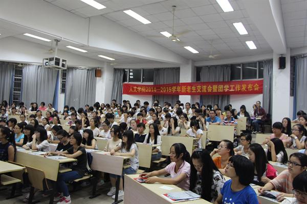 2014级新老生交流会暨团学工作发布会在人文楼101室开展。财神捕鱼