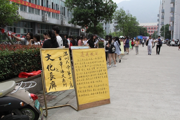 本次“文化长廊”活动以答题闯关的形式开展。每位参与者领取一张通关券,按照通关券上的说明选择闯关顺序,通关即可获得印章。活动内容根据历史时期分成五个关卡,即秦汉、隋唐、宋元、明清、采繁(现代诗歌)。每一关的内容和难度都不同,包括名人轶事、诗词曲赋填空、历史常识、生活、习俗等。闯关者全部闯关成功并集齐5个印章即可获得相应的奖品。同时还有现场抽奖和签名留念的活动,吸引了大量的同学。