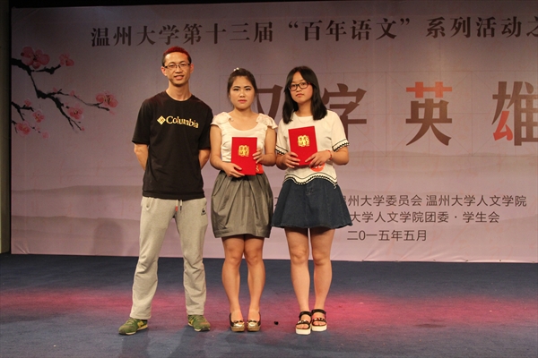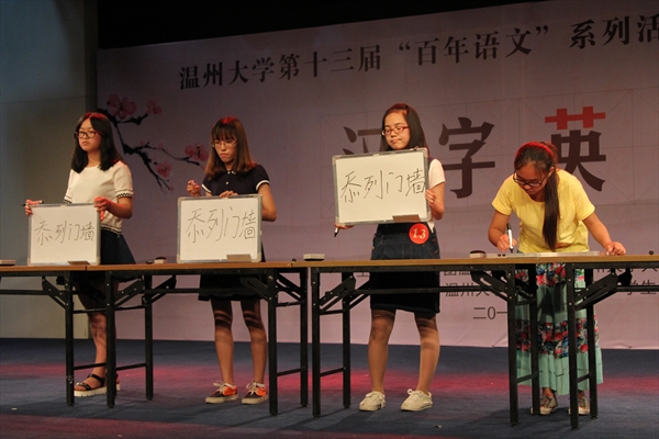 陈娜娜同学分别斩获“汉字榜眼”、“汉字探花”称号。接下来,按照赛程安排,“汉字状元”董天圆同学要与去年汉字英雄冠军-来自瓯江财神捕鱼
