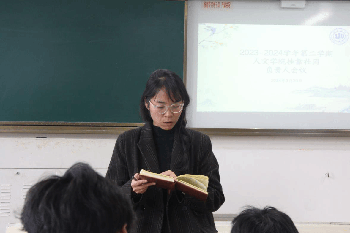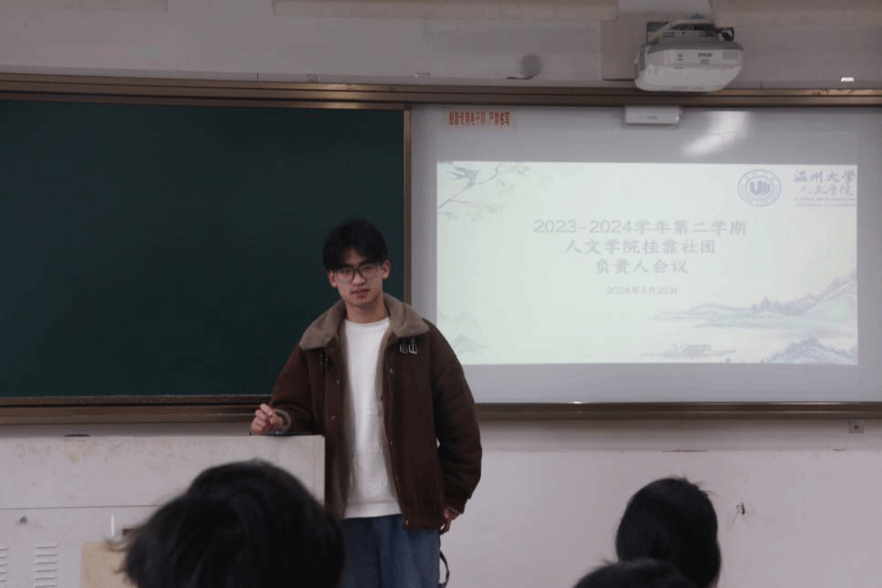 挂靠社团露浓剧社、九山诗社、民俗协会、瓯玉汉服社、栖风文学社、朗诵协会、文字作坊、红楼戏曲社各负责人依次介绍社团目前情况,总结上学期工作,并提出新学期的工作安排和目标。发言完毕后,谭黄老师逐一提出相应的建议,为大家指明了社团接下来的工作方向。