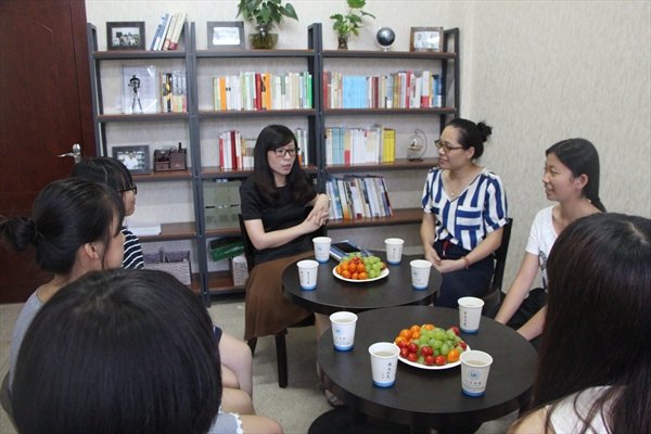 党总支书记吴静老师作为嘉宾,曾蓓蕾老师作为主持人,与6位同学共同畅谈感情,畅聊人生。与往期不同的是,本期活动为“女生专场”。