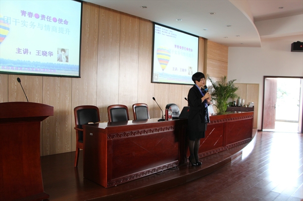 共同举办,由校团委办公室主任王晓华老师主讲学生干部情商提升的话题。财神捕鱼