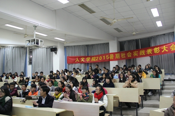 2015暑期社会实践表彰大会暨成果报告会在人文楼101教室举办,辅导员邢芳芳老师、2015暑期社会实践获奖同学及全体大一学生参加了本次报告会,会议由团学素拓部朱晓露同学主持。