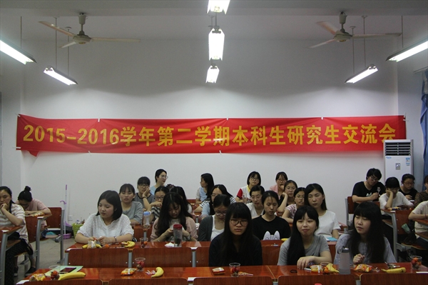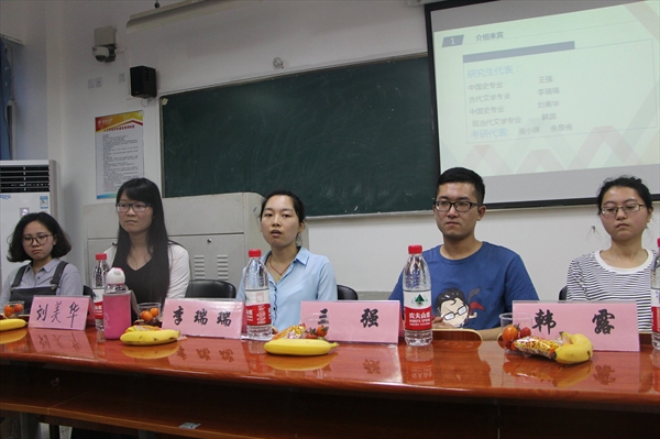 考研交流会在人文楼210教室成功开展。本次交流会邀请了王强、李瑞瑞、刘美华、韩露、周小琳和余泉侑等六位研究生学长学姐代表担任嘉宾。在本次活动中,许多有考研意向但心存疑虑的本科生也积极地参加了本次考研交流会。在轻松的茶话会氛围中,考研交流会缓缓拉开了帷幕。