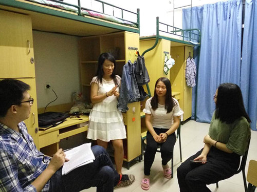 ,关心他们来温大后的报到和住宿安置情况。同时,夏院长也就同学们关注的今后的课程、研究方向等学习生活问题向新生们提出了建议和指导。同学们也热情地和老师交流自己对温大的映象,认真聆听老师的建议,并对老师的来访表示感谢。