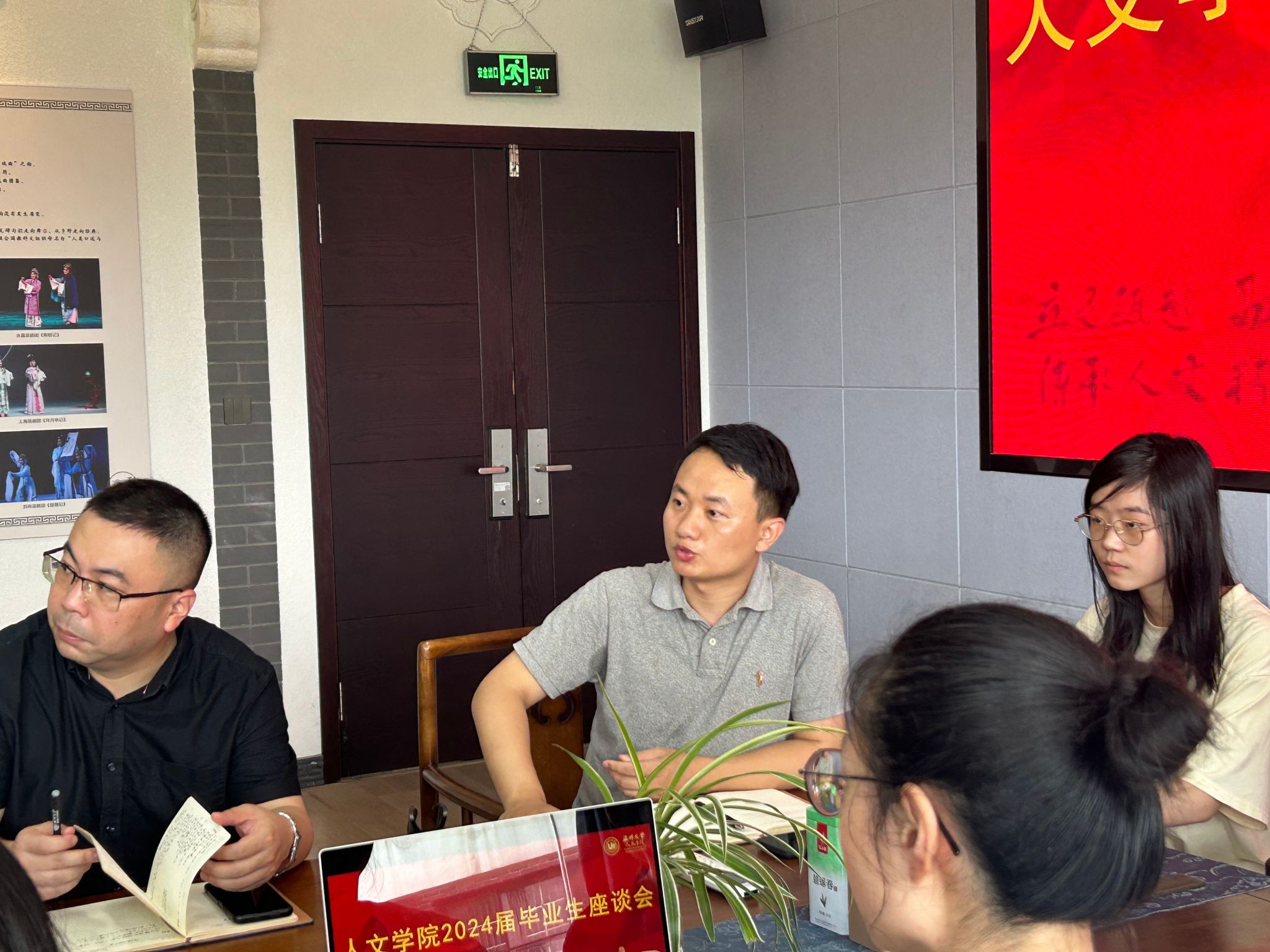 副院长陈源源、党委副书记黄玮、副院长张真、副院长陈鸿超、中文系主任鲍良兵、学工办副主任申业磊、毕业班辅导员谭黄及2024届毕业生代表出席此次座谈会。