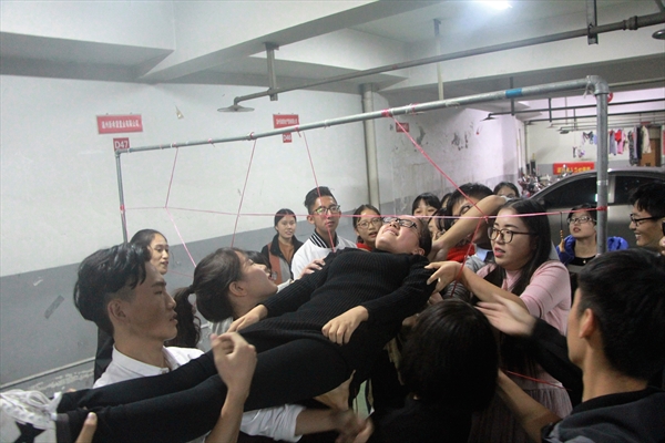在简单愉快的热身小游戏之后,飞行部落培训师对干事们进行随机分队。紧接着,在各队培训师的带领下,开始了限时的海报制作,其中包括设计队名、队徽、队歌及口号等。在新选的队长的组织下,队员们都开动头脑,全身心地投入其中。随后,便是各队风采展示,气氛热烈,创意无限,掌声不断。接下来,进入的是激动人心的游戏环节。首先是“过电网”游戏,干事们从刚开始的生疏与状况不断,逐渐地结合个人与团队的力量成功穿越“电网”。每一次成功跨越,都伴随着大家自豪的欢呼。在这个游戏结束后,培训师和干事们交流了感想。团结、遵守规则的意识深刻地烙印在每个人的心中。然后,又开展了“盲阵”游戏,在黑暗的世界里,团学人互相支持与帮助。经过这个游戏,大家深刻理解了责任、信任及倾听的重要性。最后,飞行部落培训师对本次活动进行总结,各位干事们也回味着过程,体会着感悟。最后在集体拍照留念后,圆满地结束了本次活动。