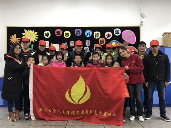 南校南大门,在南校大门集合后,登上了前往鹿城区南汇街道龙港社区养老服务中心的巴士。下午1点20分左右,志愿者们来到了养老服务中心,一到达便对现场进行了桌椅布置,之后便等待着小朋友的到来。下午1点40分左右小朋友们抵达了活动现场,负责人对志愿者进行分配,让志愿者一对一甚至多对一的辅导小朋友,志愿者们在与小朋友们熟悉之后,志愿者们进入状态,便认真开始为孩子们讲解题目,孩子们在志愿者们的悉心教导下也十分投入,从陌生渐渐熟悉放松,不断地提出新的问题。在交流与沟通中气氛渐渐升温,尽管在寒冷的冬季雨天中,室内的气氛却十分温暖而温馨。为了保证孩子们不会太过劳累,志愿者们在孩子们学习了40分钟后便与孩子们开始了有趣的课间时光,有志愿者与孩子们谈天说地,也有志愿者拿出折纸教导孩子们折千纸鹤,甚至有小朋友自己带了飞行棋想与志愿者一起较量。而在休息之后孩子们又开始专注的投入到学习之中,时间便在学习中飞快的度过,志愿者们在4点30分与小朋友们合影后,收拾场地便十分不舍地告别了。