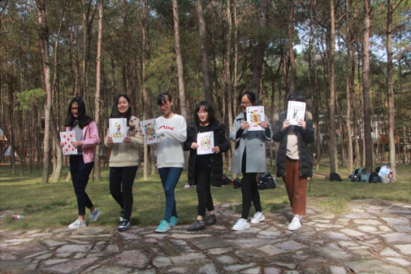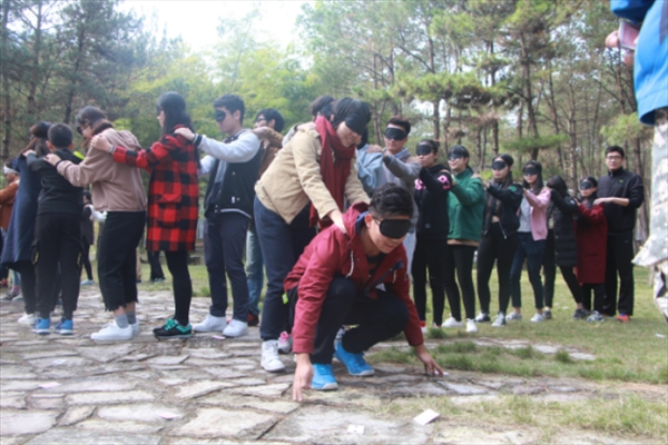 的创造力与想象力。扑克牌小游戏抛砖引玉,大家以拿到手的花色为基础,随机分组作战贪吃蛇游戏,这个游戏十分考验了智力与体力。经过一番摸索后,各组都形成了行之有效的策略,蛇头、蛇尾、蛇身表现得都相当出色。不论是游戏的赢家还是输家,都感受到了它带来更是一种集体团结协作努力后的畅快。欢笑声充盈这悠悠的树林。中午休整后,迎接干事们的是更为有趣的游戏。在培训师的带领下,干事们围成圈以手搭到左右人的肩,集体协作来完成热身运动。接着,按照上午的分组进行三次的“食物连连看”的小组竞赛。在首次比赛时,各组由于经验不足,场面略显混乱;但是,各组在总结经验之后,讨论战略战术,效果相当明显。各组都配合默契,进步飞速。通过这次游戏,干事们懂得了在遵守规则的前提下,一个团队要有明确分工,统一的全局指挥,并要有远见意识,才能将一个任务完成得完美。如此好的天气,怎可辜负永嘉书院的美景。沿桥走过宽阔的河流,映入眼帘的便是古色古香的水车,高耸的山峰。在金珠瀑布下感受沁人心脾的清爽;在活字印刷术体验馆浸浴在浓郁墨香中……傍晚,干部们又前往龙河古渡,其中热血幽默的搞怪时装更是引来一片笑声。一天的疲惫与欢快都在回程的车中静静流淌。