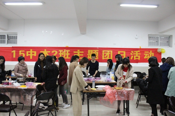 15中本2班第一次主题班会在超豪学区101活动室准时开始,本次活动以“烘培沙龙——蛋糕DIY”为主题,使同学们在活动的过程中体会自制蛋糕以及来自团体合作的快乐,同时也加强同学们的友谊,增强班级的凝聚力。