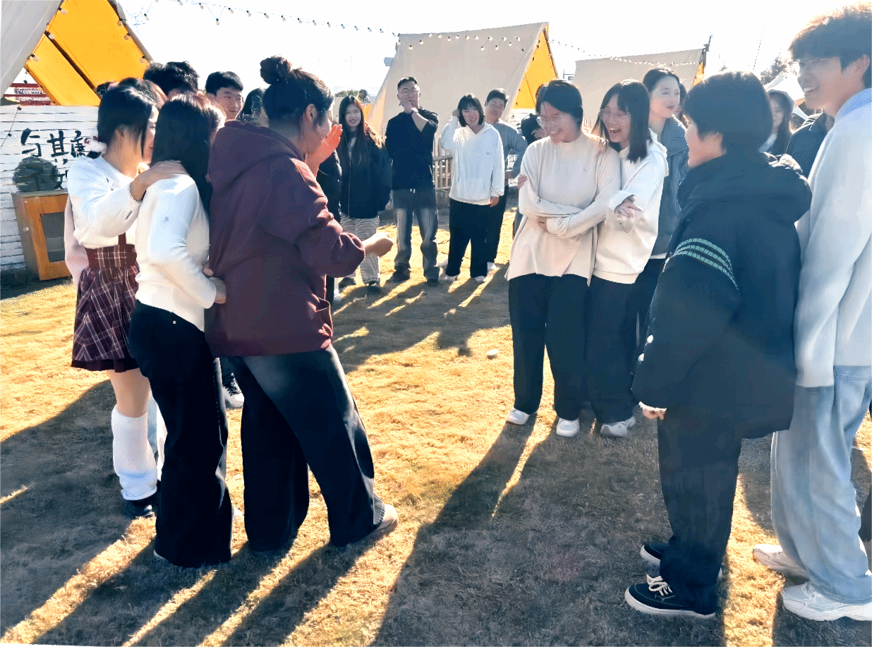 当夕阳为草坪镀上金边,全员大合影的快门声响起,这场趣味盎然的团建落下帷幕。从博物馆里读懂温州精神的深刻内涵,到游戏中践行协作担当的青年责任,学生骨干们既收获了团队情谊,更明晰了成长方向。未来,他们将以此次活动为起点,把“敢为人先、抱团奋进”的温州精神融入日常,以青年骨干的行动力,在学业与服务中书写新时代的担当篇章。