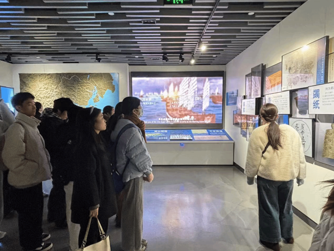 上午9点,朔风渐暖,冬阳正好。全体学生骨干首先前往了世界温州人博物馆,在展品与史料中追溯温州人“敢闯敢试、抱团协作”的精神内核。步入馆内,“弄潮儿——走向世界的温州人”主题展陈首先将众人的目光引向温州的地理与人文情怀。“七山二水一分田”的环境,孕育出温州人“面朝大海、开疆拓土”的生存智慧,而“经世致用、重商精工”的理念,更成为刻入血脉的精神内涵。