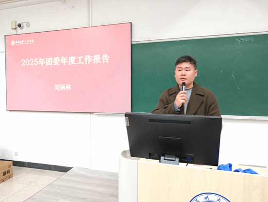 随后,财神捕鱼 团委书记刘炳林老师作年度工作报告,系统总结了财神捕鱼 在思想引领、组织建设、品牌培育及实践育人等方面取得的成果,重点介绍了宣传阵地建设、“百年语文”品牌提升与学生服务优化等关键进展。报告高度肯定了全体成员的辛勤付出,并号召大家团结奋进,共启新篇。