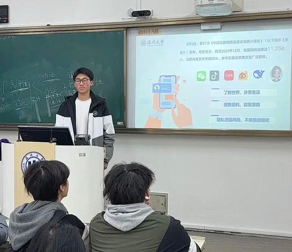 班会开篇,便以一组鲜活数据铺展网络时代的全景画卷。各班援引第 57 次《中国互联网络发展状况统计报告》,向学子们呈现我国网民规模达 11.25 亿、互联网普及率突破 80% 的时代盛景:网络早已成为学习求知、交流思想、展示自我的重要平台,为青年成长带来无限机遇。