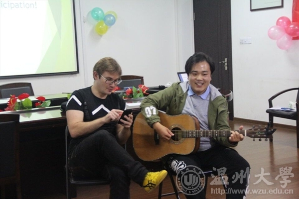 的嘉宾为大家弹起了吉他唱起了歌,外教luca也情不自禁地参与进来,为大家一展歌喉。欢声笑语中,交流会完满落幕,但英语的魅力却永远地留在了每个参与者的心中,引导着他们不断探索英语学习的乐趣。