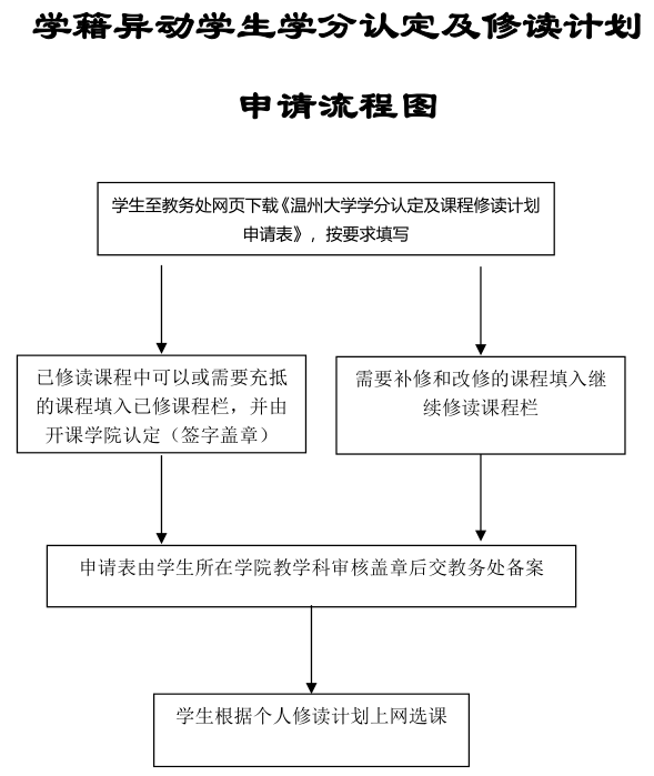 学籍异动学生学分认定及修读计划申请流程图