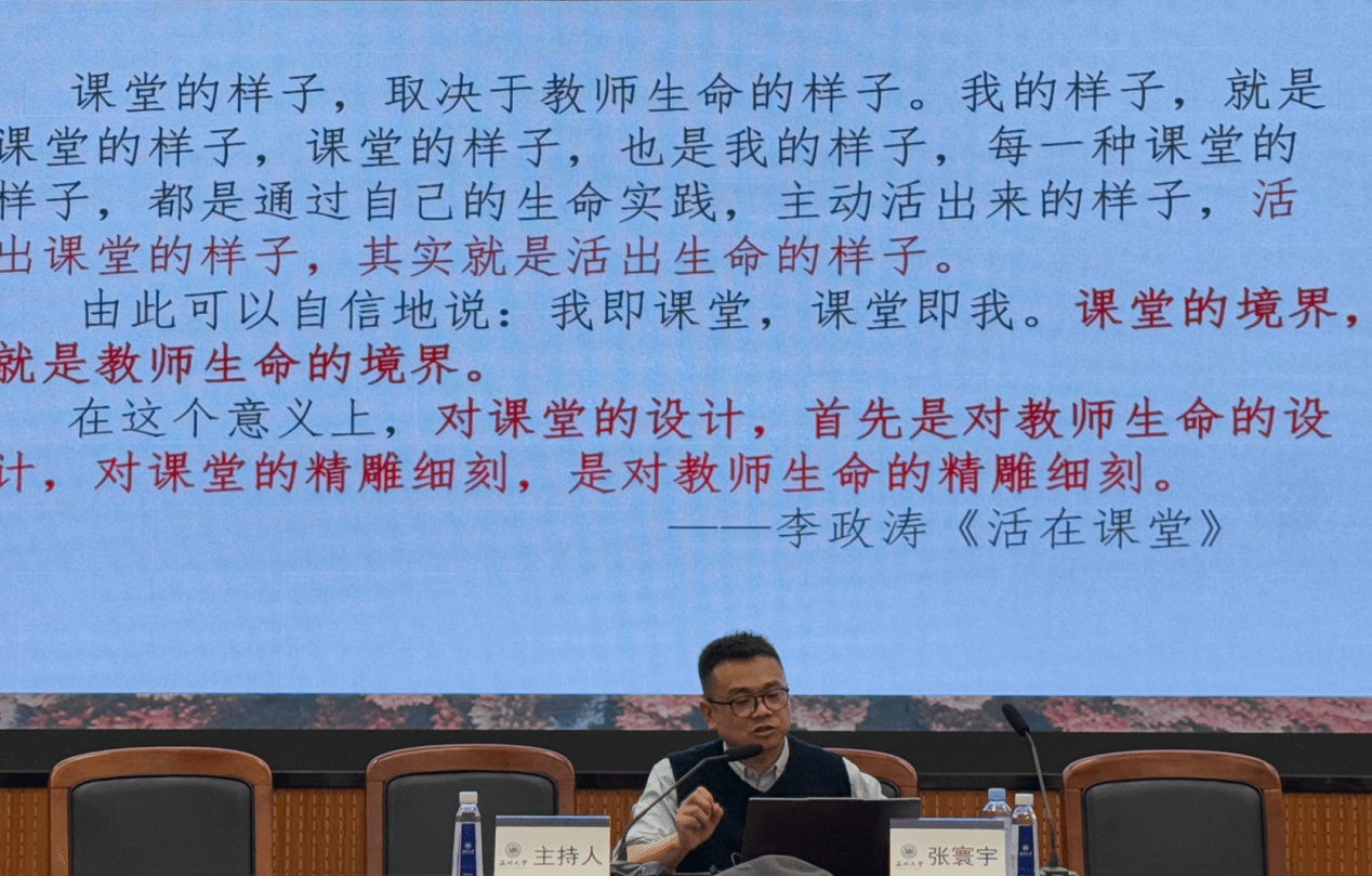 张寰宇院长的讲座内容涵盖了他作为语文教师的成长历程,从最初的站稳课堂到后来的迈开课堂、回归课堂、改革课堂,直至现在的迭代课堂。他强调,教师的成长是一个不断积累和反思的过程,需要在教学实践中不断探索和创新。在早期的教学生涯中,张院长通过激发教学激情和收获与学生的质朴情谊,逐渐站稳了脚跟。他没有受到教学环境的束缚,并遇到了一位热爱语文教学的指导老师,这位老师对他的影响深远,帮助他树立了良好的榜样目标,养成了珍惜和精心的态度。