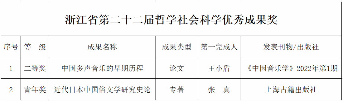 近日,浙江省第二十二届哲学社会科学优秀成果奖获奖名单揭晓,财神捕鱼 王小盾教授的论文《中国多声音乐的早期历程》获批基础理论研究优秀成果二等奖,张真副教授的著作《近代日本中国俗文学研究史论》获批基础理论研究优秀成果青年奖。