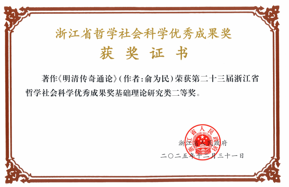 奖励名称:浙江省第二十届哲学社会科学优秀成果奖
