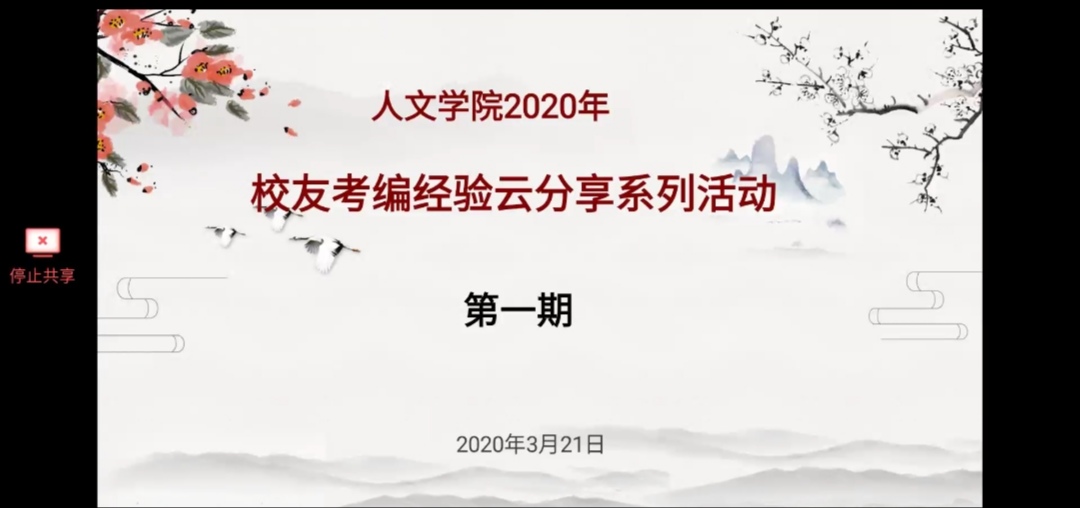 为帮助学生们更好地了解考编,助力同学们的考编之路,2020年3月21日19:00,财神捕鱼 在腾讯会议上开展了第一期校友考编经验云分享活动,院党委副书记魏一、学工办辅导员李丹萍、两位优秀毕业生以及有意考编的同学共60余人参加了此次活动。