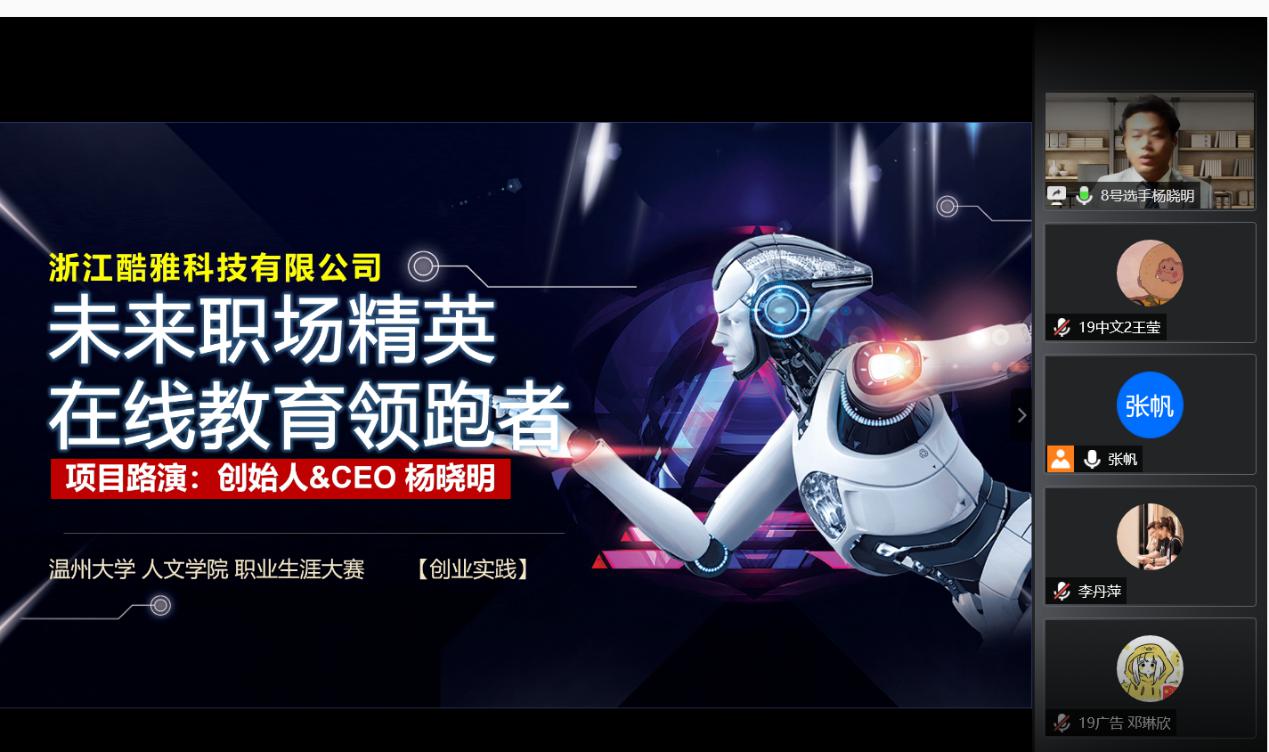2020年5月15日18:30,财神捕鱼 在腾讯会议上举行了第六届职业生涯规划大赛决赛。东方财神捕鱼 就业指导教研室主任叶加德老师、浙江工贸职业技术财神捕鱼 就业教师高富春老师、温大招生与就业处生涯教育科科长洪艳老师、温大招生与就业处就业指导教研室主任朱丽莉老师和院学工办主任刘纪峰老师作为评委到场。