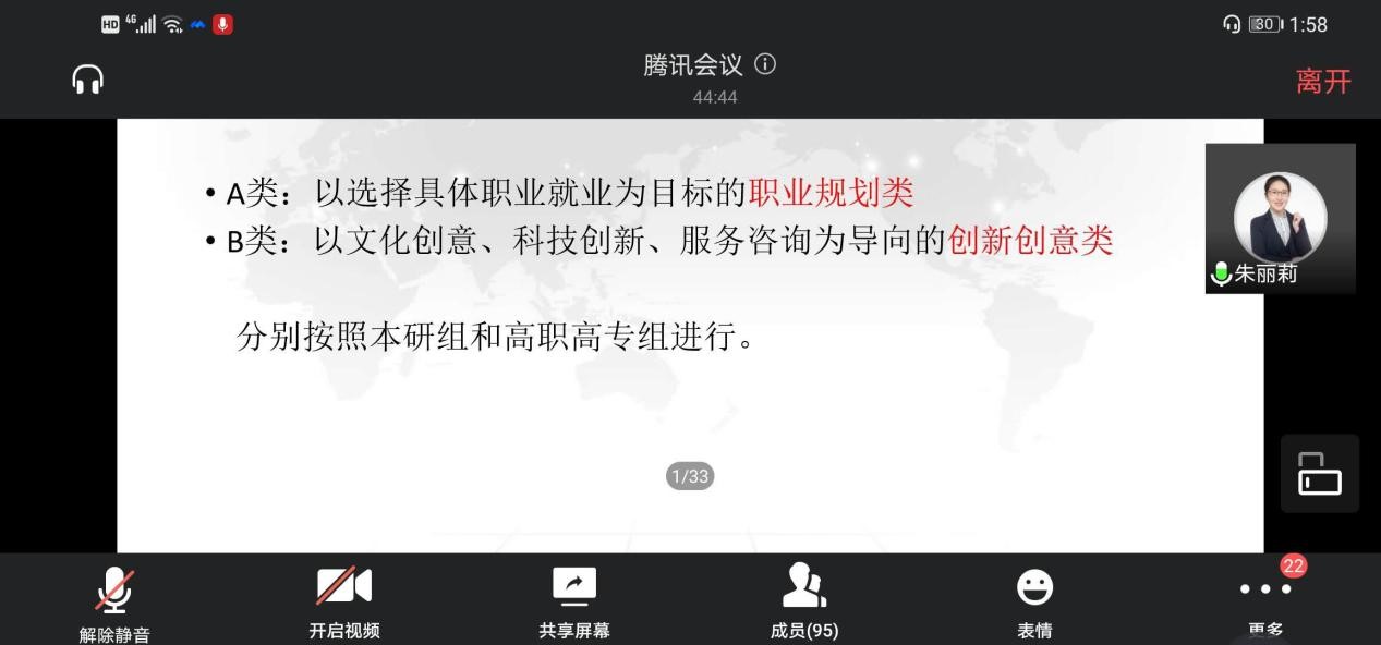 随后,财神捕鱼 职业生涯发展与就业指导教研室主任朱丽莉老师从专业角度为同学们进行职规大赛赛前指导。她以财神捕鱼 第十二届大学生职业生涯规划大赛的实施方案为例,为同学们介绍了大赛的相关信息,并结合近年来做评委的经历,鼓励同学们积极参与职规大赛。她认为,每一位同学在参加比赛的过程中都在成长,在不断触碰自己边界的过程中,开拓视野,对自我有更深刻的认识,还能锻炼自己的综合性能力。同时,朱丽莉老师针对大赛的奖项设置、大赛分类、时间安排和决赛要求等四个方面介绍了大赛的情况。在职业规划类的文本撰写方面,朱老师以获奖同学的作品为例,对封面的设计、前言的撰写、个人基本信息的介绍以及目录的设计等方面提出建议,她认为选择的目标职业要是自己真正热爱并有所尝试的。关于创新创业类文本的撰写,朱老师针对项目背景、市场介绍,包括市场情况、市场容量、竞争情况以及未来的发展趋势等方面进行了相关指导。