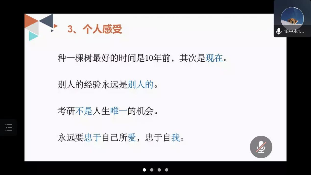 本次考研百日倒计时座谈会持续了一个半小时,书记、老师和学姐们的经验分享让现场及线上参与的同学收获颇丰。正如思琦学姐所说,种一棵树最好的时间是十年前,其次是现在。希望各位考研学子在冲刺阶段坚定心中信念,只管风雨兼程,我们一“研”为定!