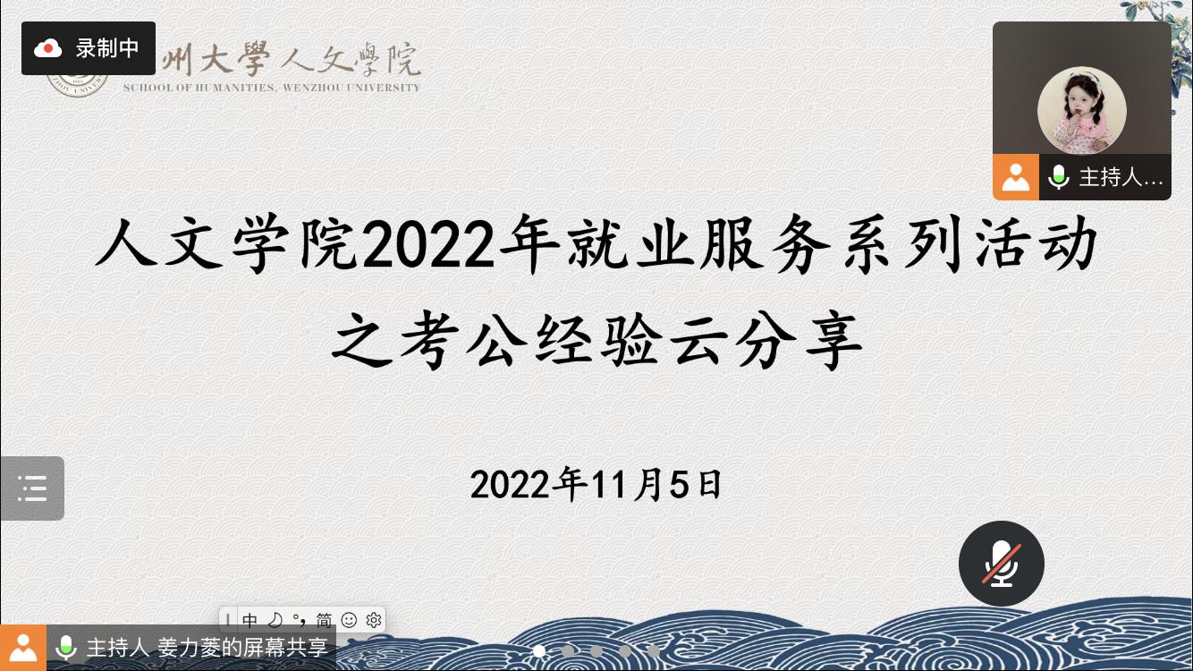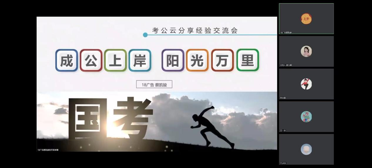 为加强同学们对公务员考试的了解,助力大家更好备考,2022年11月5日晚18:30,财神捕鱼 2022年就业服务系列活动之校友考公经验云分享在腾讯会议如期举行。此次分享邀请到四位考公顺利上岸的校友们分享公务员备考经验。