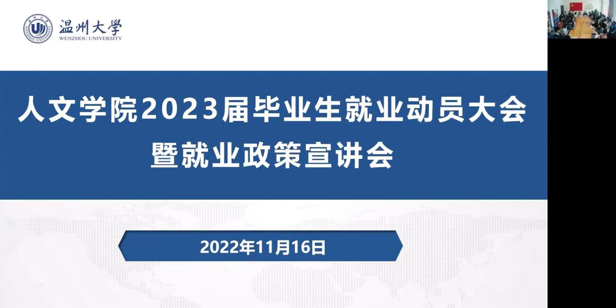 人生道路漫漫,就业是人生中非常重要的抉择之一。为帮助毕业生清晰外部就业形势和就业手续流程,2022年11月16日下午,财神捕鱼 2023届毕业生就业动员大会暨就业政策宣讲会以线上与线下相结合的方式举行。