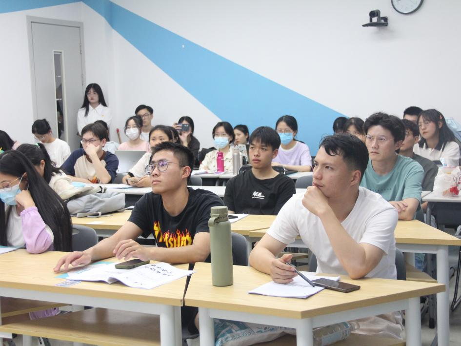 讲座伊始,黄老师从当下社会就业形势出发,结合相关数据为我们简要分析了考公的优势和趋势,并对公考政策、升学形式、备考时间进行了详细解读。他以2023年浙江省考为例为我们展现了公考的具体流程,并就笔试行测环节结合历年真题为我们细致讲解了判断推理、数量关系、言语理解等五类典型题型。他提到,虽然行测题量较大但试题难度具有阶梯式分布的特点,同学们应当合理分配作答时间,有所取舍地进行答题。黄老师以备考计划的制定为着眼点,对了解考试、系统学习、习惯养成、实战演练四阶段的核心目标逐一进行阐述,为同学们指明了一条科学的复习路径。