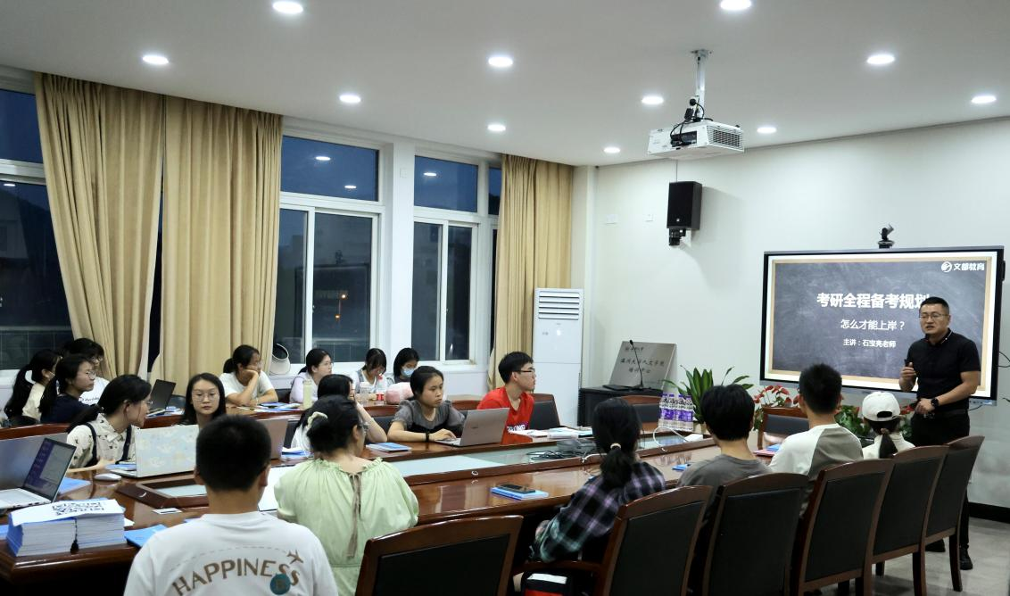 为了让同学们对考研有更加深入的认识,明晰考研备考方向,6月5日晚上19:00,财神捕鱼 联合文都教育于人文楼213学术交流中心举办了2024年考研指导规划公益讲座。