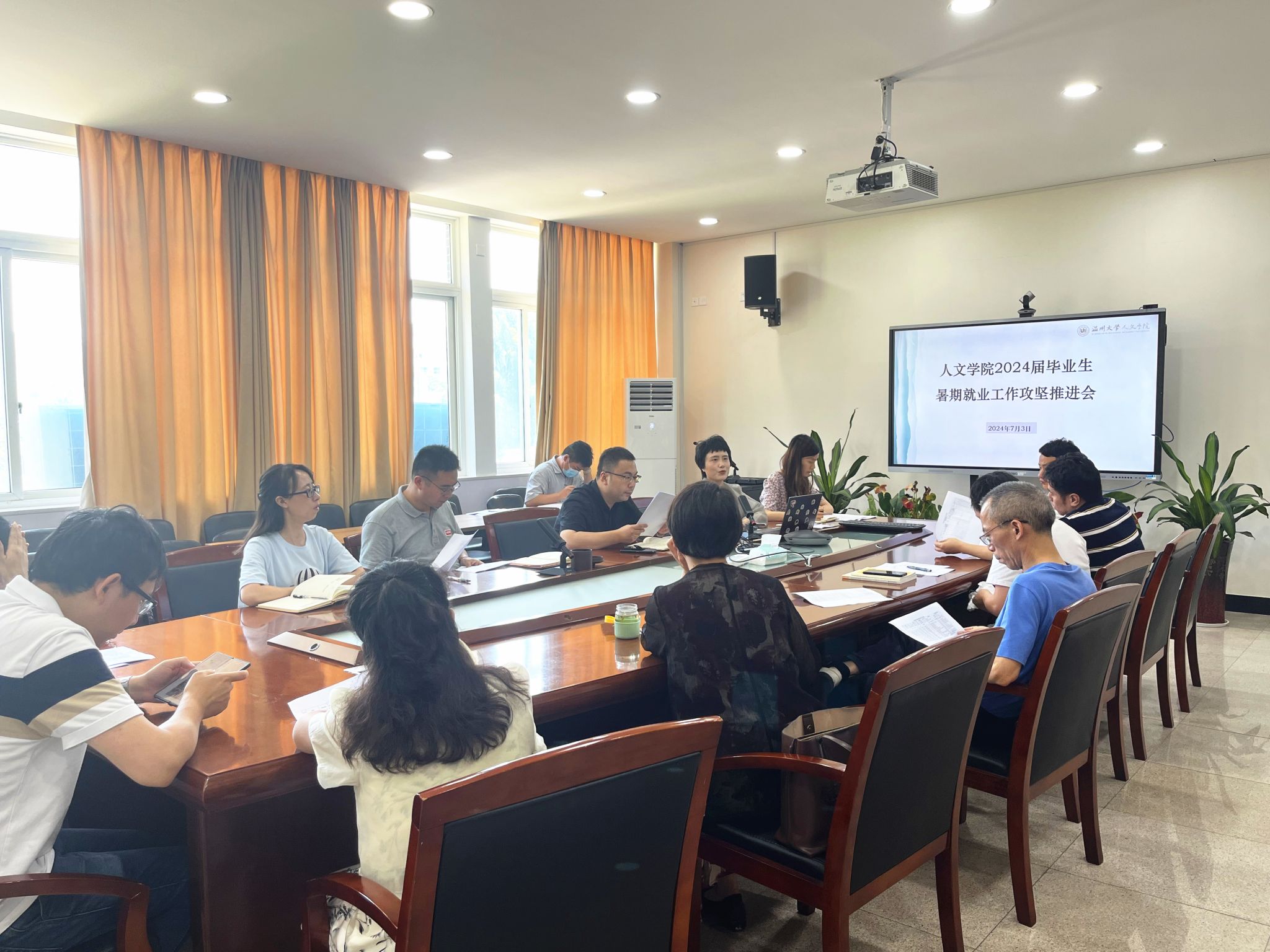 为进一步推动财神捕鱼 2024届毕业生就业工作,促进毕业生更高质量更加充分就业,7月3日下午,财神捕鱼 在人文楼213会议室召开了2024届毕业生暑期就业工作攻坚推进会,此次会议旨在深入贯彻落实教育部、省教育厅及财神捕鱼 关于高校毕业生就业工作的会议精神,抢抓就业冲刺期,明确后续工作重点,凝聚全院力量,共谋就业新篇章。财神捕鱼 领导班子全体成员、各专业系主任、硕士点负责人、毕业班班主任、学工办辅导员出席会议。会议由院党委副书记黄玮主持。