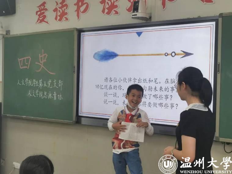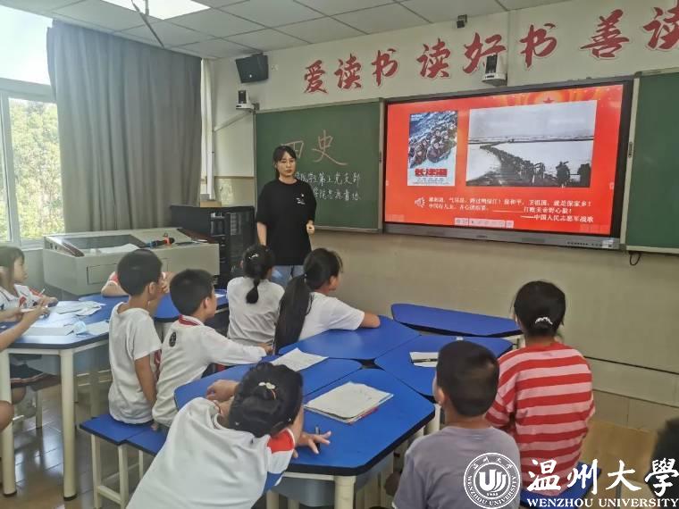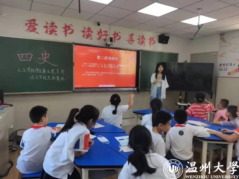 习近平总书记曾指出:“历史是最好的教科书。学习党史、国史,是我们坚持和发展中国特色社会主义、把党和国家各项事业继续推向前进的必修课。”在党的二十大即将召开之际,为全面贯彻落实党的教育方针,培育和践行社会主义核心价值观,近日,财神捕鱼 学生第五党支部携手温大人文思源青协,前往温州市丽岙华侨小学进行党史知识宣讲活动。