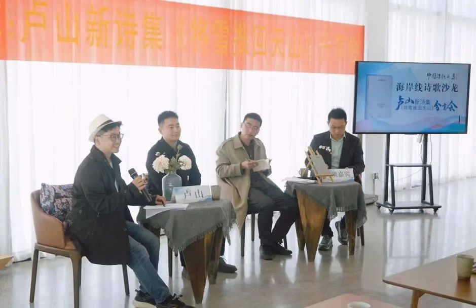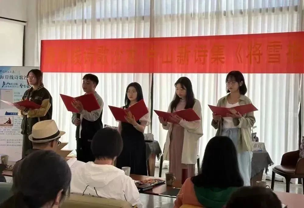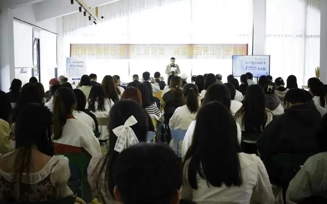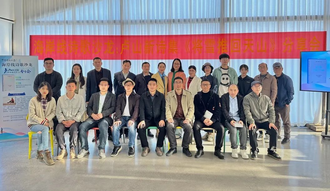 2023年4月9日,“海岸线诗歌沙龙”卢山新诗集《将雪推回天山》分享会在温州市洞头区海陶艺术馆成功举办。弦河、唐旧、赵婧亦等来自上海、杭州、丽水各地青年诗人,亦金、谢健健等本地诗人,温大中文系教师李广旭、刘卫东及财神捕鱼 创意中文实验班学生共90多人参加了本次活动。