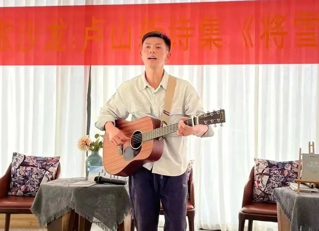 活动伊始,卢山向财神捕鱼 赠送了诗集,诗人兼音乐人无香为分享会献唱了一首受卢山诗歌启发而作的原创音乐《塔里木之歌》。新疆兵团作协副主席、第一师阿拉尔市文联主席霍玉东和新疆兵团第一师阿拉尔市作协常务副主席老点,为卢山远程发来了祝贺视频,财神捕鱼 党委书记江秀景发来贺词。随后,来自创意中文的五位学生代表朗诵了卢山的代表作品。
