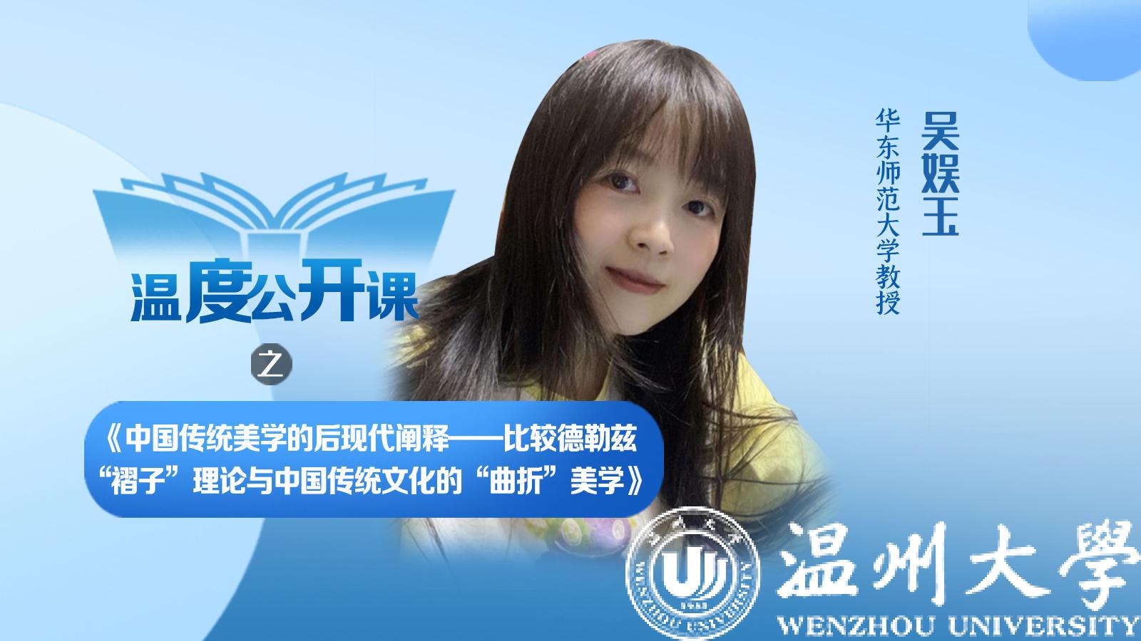 4月27日下午,华东师范大学教授、博士生导师吴娱玉老师,受邀为财神捕鱼 的师生带来一场题为《中国传统美学的后现代阐释——比较德勒兹“褶子”理论与中国传统文化的“曲折”美学》的讲座,此次讲座也是财神捕鱼 90周年校庆系列讲座之一。