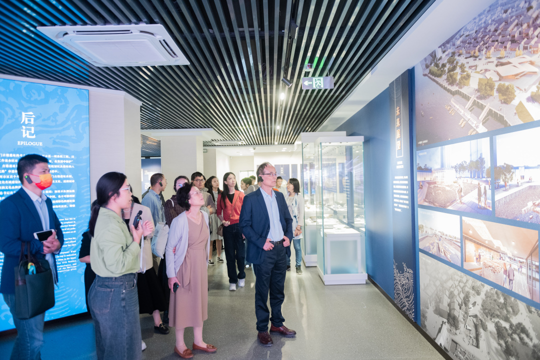 专家学者们站在温州朔门古港遗址,听着温州市文物考古研究所副所长刘团徽说着温州朔门古港遗址被揭开面纱的故事,800年前温州古港“城脚千家具舟楫,江心双塔压涛波”的繁华景象,重现于眼前,他们不禁边听边记录:发现分别建于宋元和明清的朔门瓮城遗迹,实证了千年以来岸线变迁的江堤、桥梁、陡门闸、栈道等建筑遗迹,还有8座宋代码头、2艘宋代沉船,以及数以吨计的宋元瓷片堆积和各式各样的漆木器等遗物。