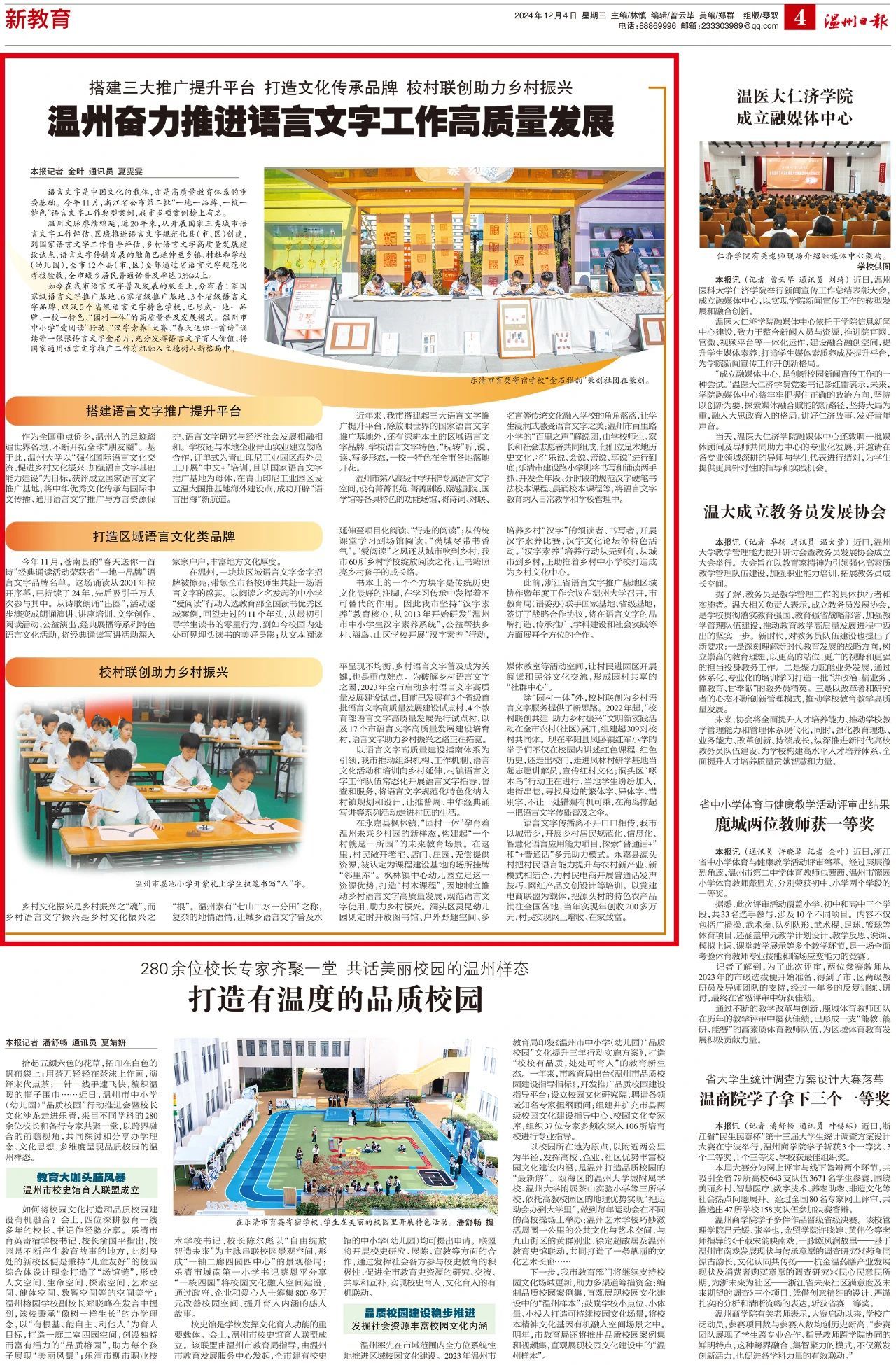 如今在我市语言文字普及发展的版图上,分布着1家国家级语言文字推广基地、6家省级推广基地、3个省级语言文字品牌,以及5个省级语言文字特色财神捕鱼 ,已形成一地一品牌、一校一特色、“园村一体”的高质量普及发展模式。温州市中小学“爱阅读”行动、“汉字素养”大赛、“春天送你一首诗”诵读等一张张语言文字金名片,充分发挥语言文字育人价值,将国家通用语言文字推广工作有机融入立德树人新格局中。