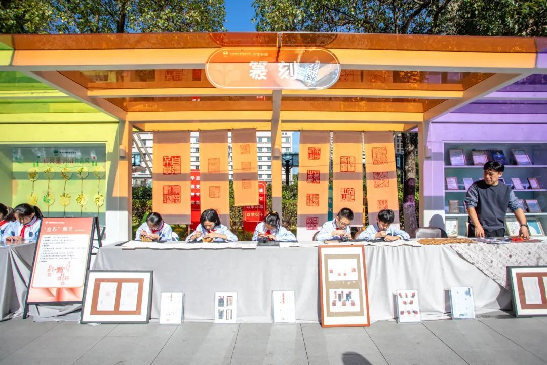 “金石雅韵”篆刻社团在篆刻。