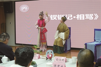 活动开始,永嘉昆剧团的黄苗苗和金海雷率先登场,表演昆剧《钗钏记·相骂》片段,带读者领略永昆的独特魅力。温州市瓯剧艺术研究院年轻演员吴鑫和叶媛媛随后献演了《张协状元·游街》片段,该剧目在保留传统瓯剧的基础上,进行了创新性改编,使得古老的艺术形式焕发出新的生命力。近两年,新编瓯剧《张协状元》不仅登上了中国表演艺术最高殿堂——国家大剧院,还破圈出海,参演巴黎中国戏曲节,把温州南戏带到了国际舞台。